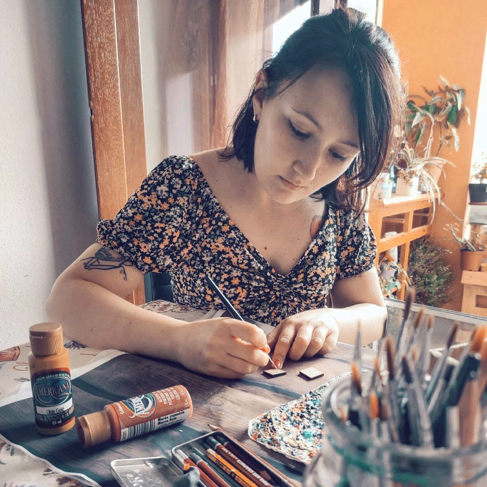 Attraverso la pittura e un intenso lavoro di progettazione, trasformo il legno in delicati lavori da collezione: le mie Kokeshine prendono vita pennellata dopo pennellata, pronte a portare il loro messaggio di gioia e speranza nelle vostre case, dettagliate miniature diventano gioielli, gli EmaTulip strizzano un occhio alla tradizione giapponese e i tessuti acquistati in Giappone, brillano per poter essere indossati sottoforma di gioiello!